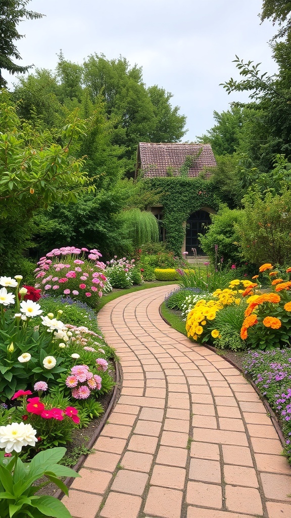 Imagine stepping into a cozy garden filled with colorful blooms. This rustic cottage garden is a perfect example of how flower garden ideas can create a warm and inviting outdoor space. The vibrant flowers, like daisies and zinnias, line a charming path that leads to a quaint home, making it feel welcoming and cheerful.